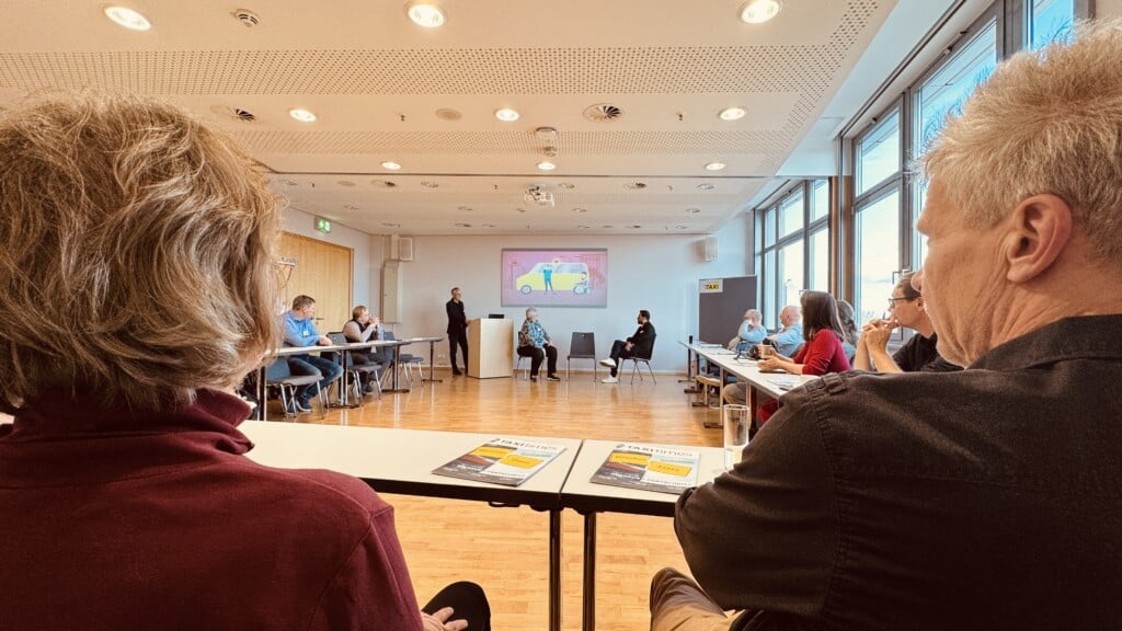 Bildergarie vom Deutschen Taxi und Mietwagen Tag 2025 in Erfurt Svenja Lange-Wilde2025-11-14T15:04:15+01:0014. November 2025| Fotos können per Klick geteilt oder heruntergeladen werden Herwig Kollar eröffnet den Taxitag 2025 Großer Saal für die vielen Gäste des Taxitags Großes Intereesse an der Eröffnungs-Session zum Autonomen Fahren Hochkarätige Eröffnung des Taxitags 2025 Prof. Dr. Knie hielt eine mitreißende Keynote zum Autonomen Fahren Dr. Lea Decker von New Mobility Solutions gibt einen Ausblick auf den Einsatz autonomer Fahrzeuge Rainer Becker von MOIA beschreibt, welche Lösungen das Unternehmen anbietet Fahrzeugausstellung vor dem Messeeingang Interessante neue Parter wie Dacia waren vertreten Breite Diskussionsrunde zum ÖPNV-Taxi Dr. Heim von Simdle Mobility spricht in der Session zum ÖPNV-Taxi Q&A zum ÖPNV-Taxi Rasche MdL (FDP) hat das ÖPNV-Taxi in NRW in die Spur geschickt Christian Holzhauser (Taxizentrale Wien) im Gespräch mit Hermann Waldner Die Gäste aus Wien nahmen mit Interesse teil Christian Holzhauser von Taxi 40100 gibt Einblicke in die Marktstrategie der Wiener Zentrale Die Kleine Fachkunde kommt doch noch und war auch Thema auf der Bühne Dirk Ritter von der Verkehrsbehörde Hamburg zeigt, was die Hansesadt beim Tarifkorridor plant Diskussion der Vor- und Nachteile des Tarifkorridors Hermann Waldner wünscht sich mehr Freiheiten für die Taxiunternehmer Beatrix Lehnhardt und Sina Undeutsch von Shell bei der Abendveranstaltung des ersten Abends Lehmann von Stadt.Land.Netz spricht über digitale Schülerverkehre Marcus Dawidjan vom neuen Partner Stadt.Land.Netz 230 Teilnehmer und Teilnehmerinnen auf dem Taxitag 2025 Inklusionstaxi-Disskusion Martin Maubach vom Projekt Inklusionstaxi Spitzlei, Maubach und Celik und von Teuffel Spitzlei, Maubach und Erol Celik von DIE Transform GmbH Matthew Bezzina von eCabs war aus Malta angereist (rechts) Mengdehl von F&K Funk-Technik GmbH Unternehmer informieren sich am Stand bei Jan Röder von Aral Panel: Plattformen - Freund oder Feind? Michael Weiss von FMS präsentiert, wie Taxizentralen die digitalen Potenziale nutzen Gute Stimmung bei den Gästen aus Wien und Berlin Verabschiedung von Kollar und Waldner bei der Abendveranstaltung in der Erfurter Zentralheize Teilen Sie diesen Beitrag! FacebookXRedditLinkedInWhatsAppTumblrPinterestVkE-Mail Ähnliche Beiträge Deutscher Taxi und Mietwagen Tag in Erfurt – Branchenevent glänzt mit 230 Teilnehmern und Teilnehmerinnen 14. November 2025 | 0 Kommentare Bundesverband und Softwarehersteller Stadt.Land.Netz gehen neue Partnerschaft ein 7. November 2025 | 0 Kommentare Uber-Fahrer fordern Mindestpreise – Verband sieht Weckruf für Deutschland 7. November 2025 | 0 Kommentare